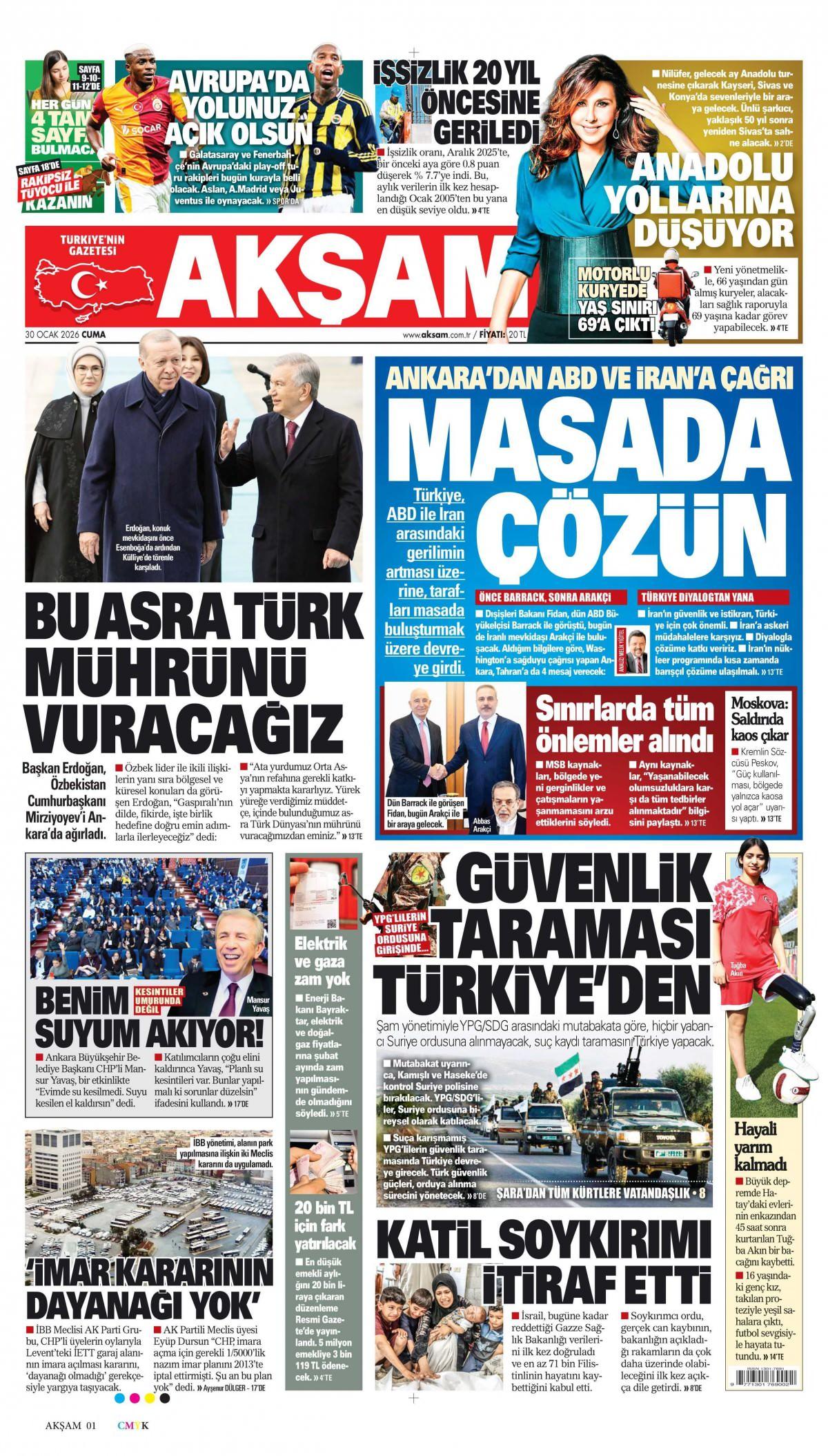 Akşam Gazetesi 31 Ocak 2026 Günü Manşeti