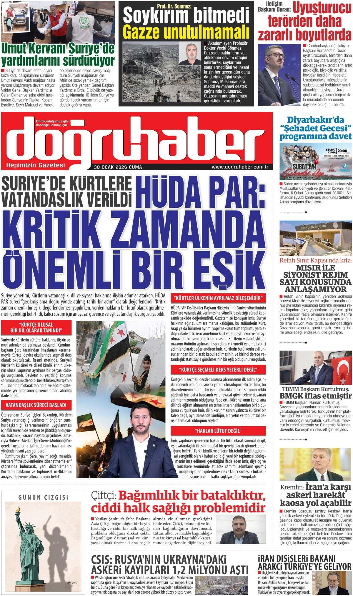 Doğru Haber Gazetesi 31 Ocak 2026 Günü Manşeti