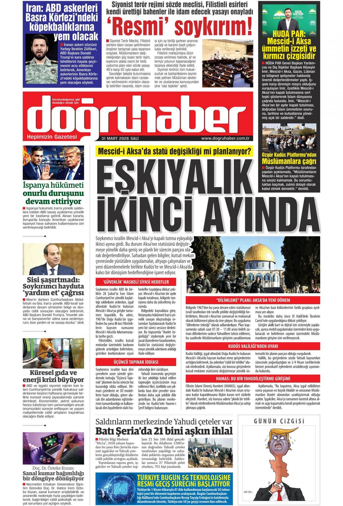 Doğru Haber Gazetesi 1 Nisan 2026 Günü Manşeti