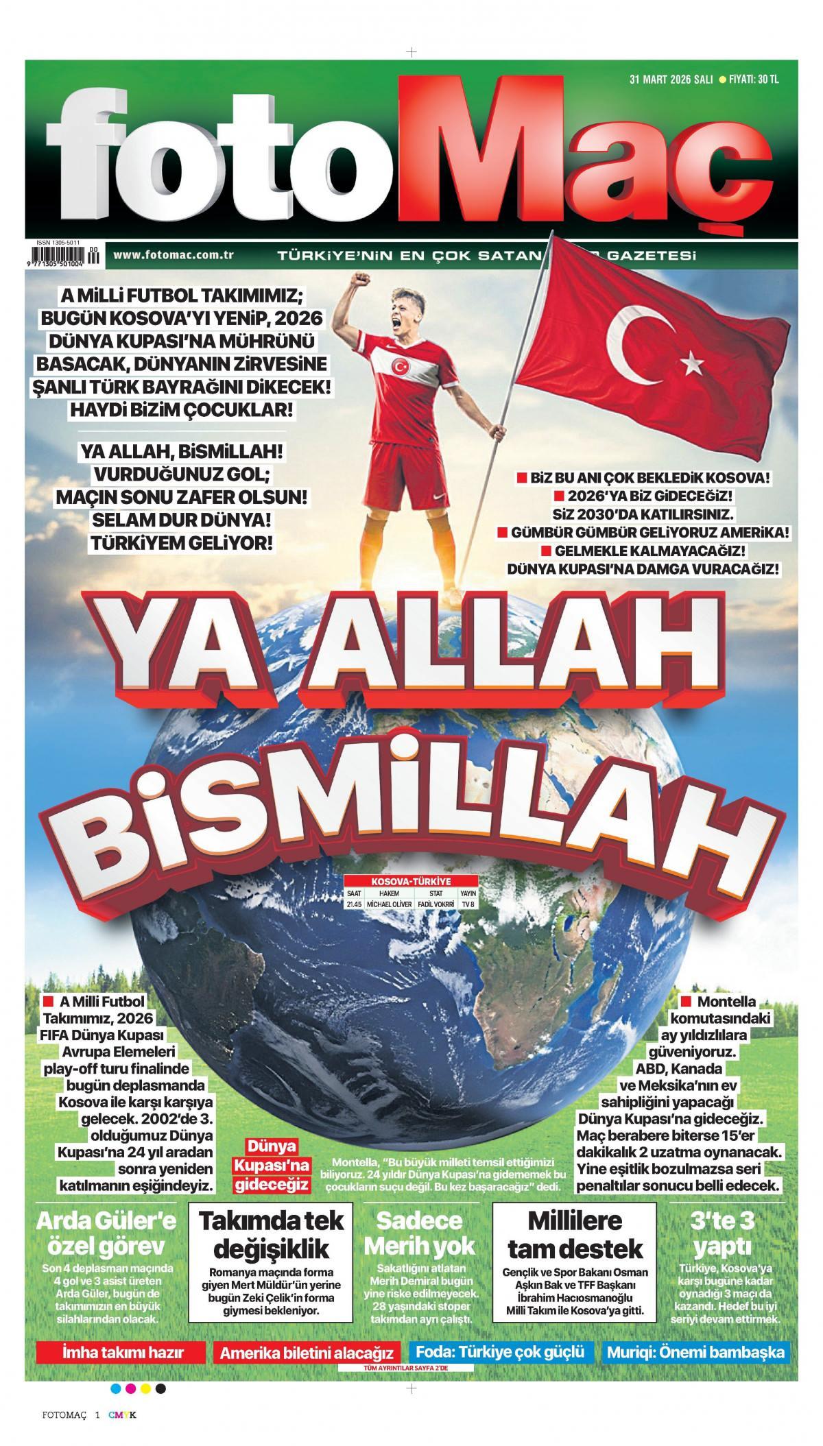 Fotomaç Gazetesi 1 Nisan 2026 Günü Manşeti