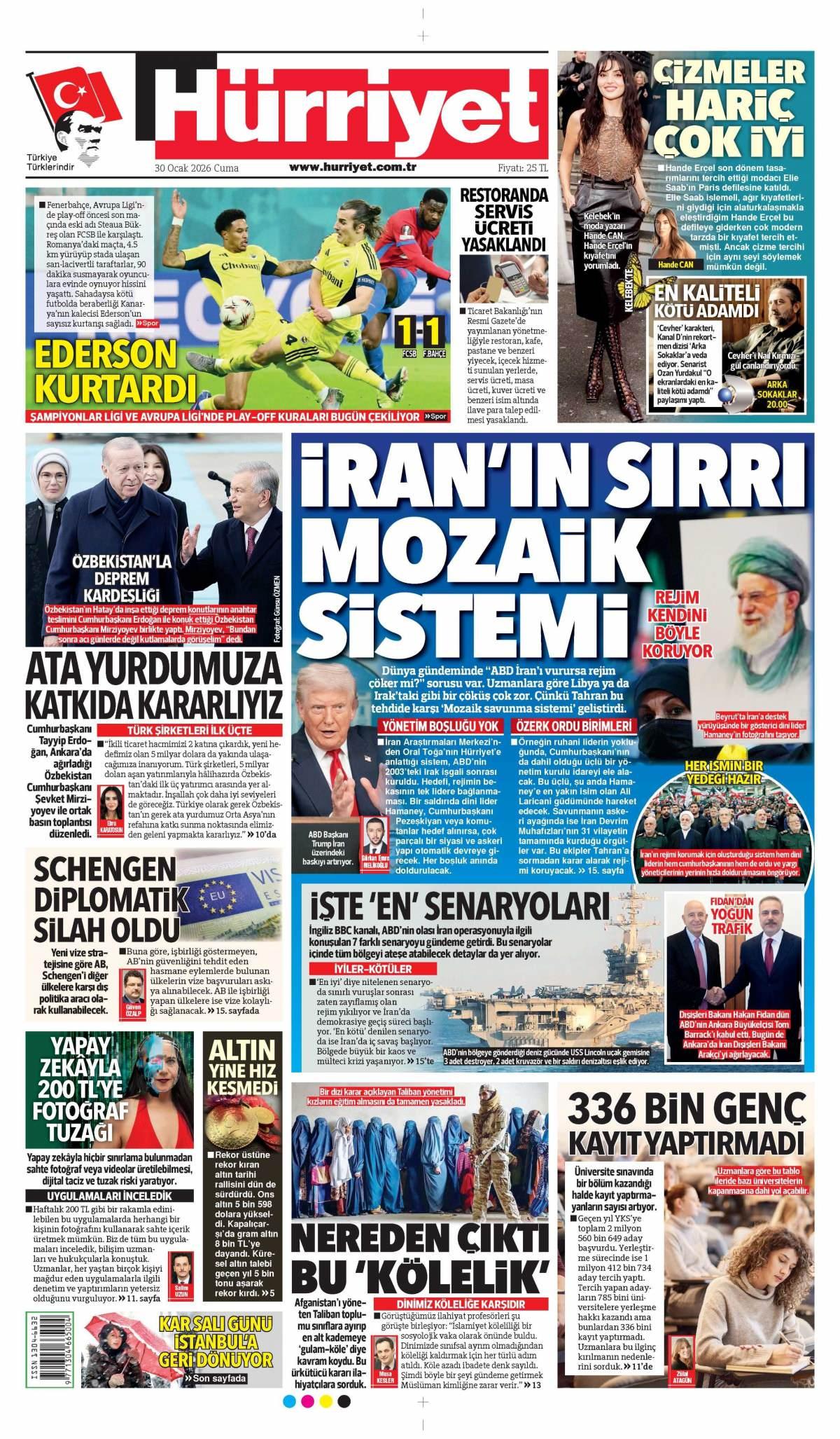 Hürriyet Gazetesi 31 Ocak 2026 Günü Manşeti