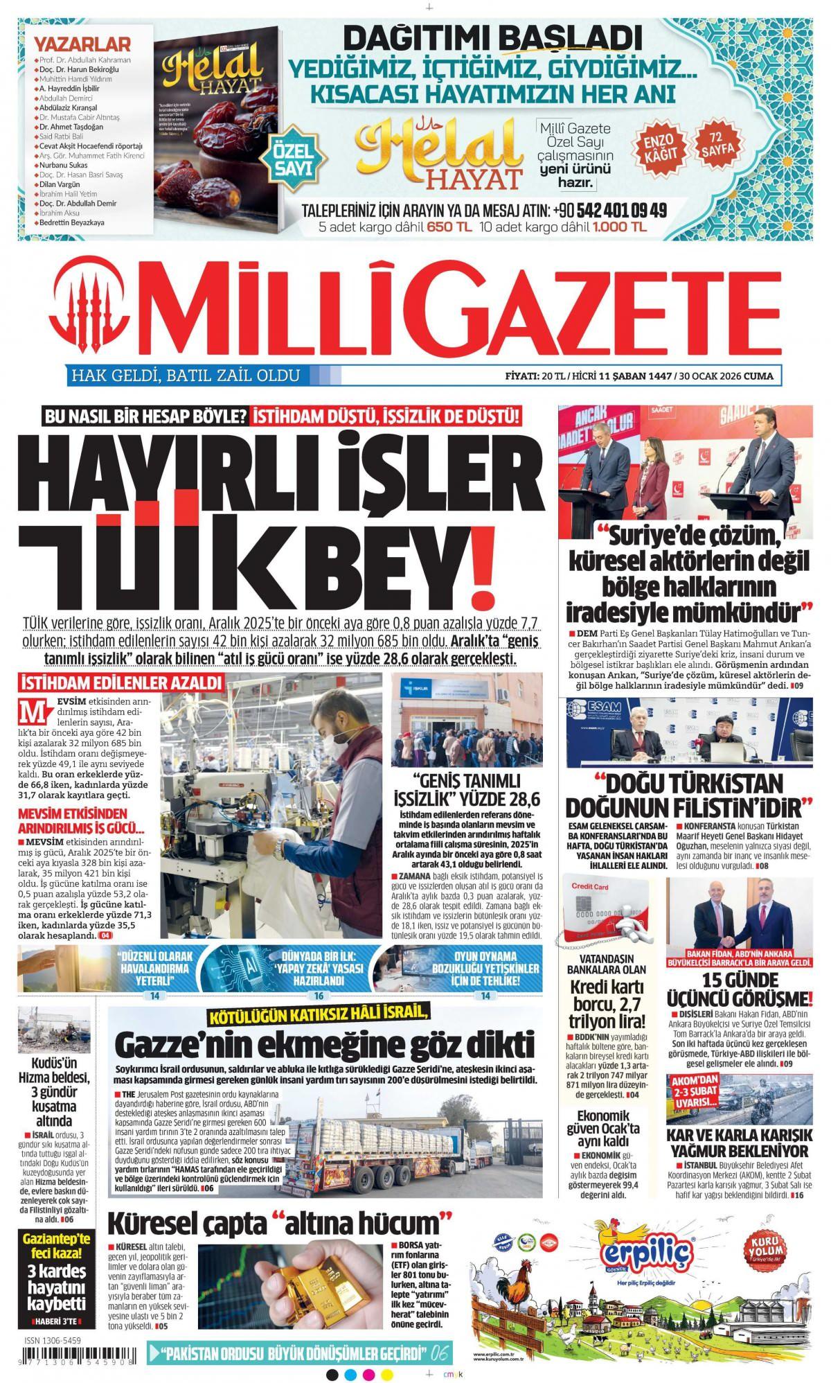 Milli Gazetesi 31 Ocak 2026 Günü Manşeti