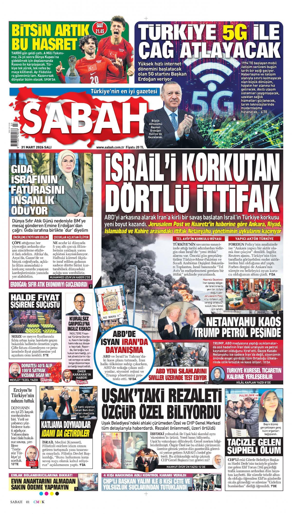 Sabah Gazetesi 1 Nisan 2026 Günü Manşeti