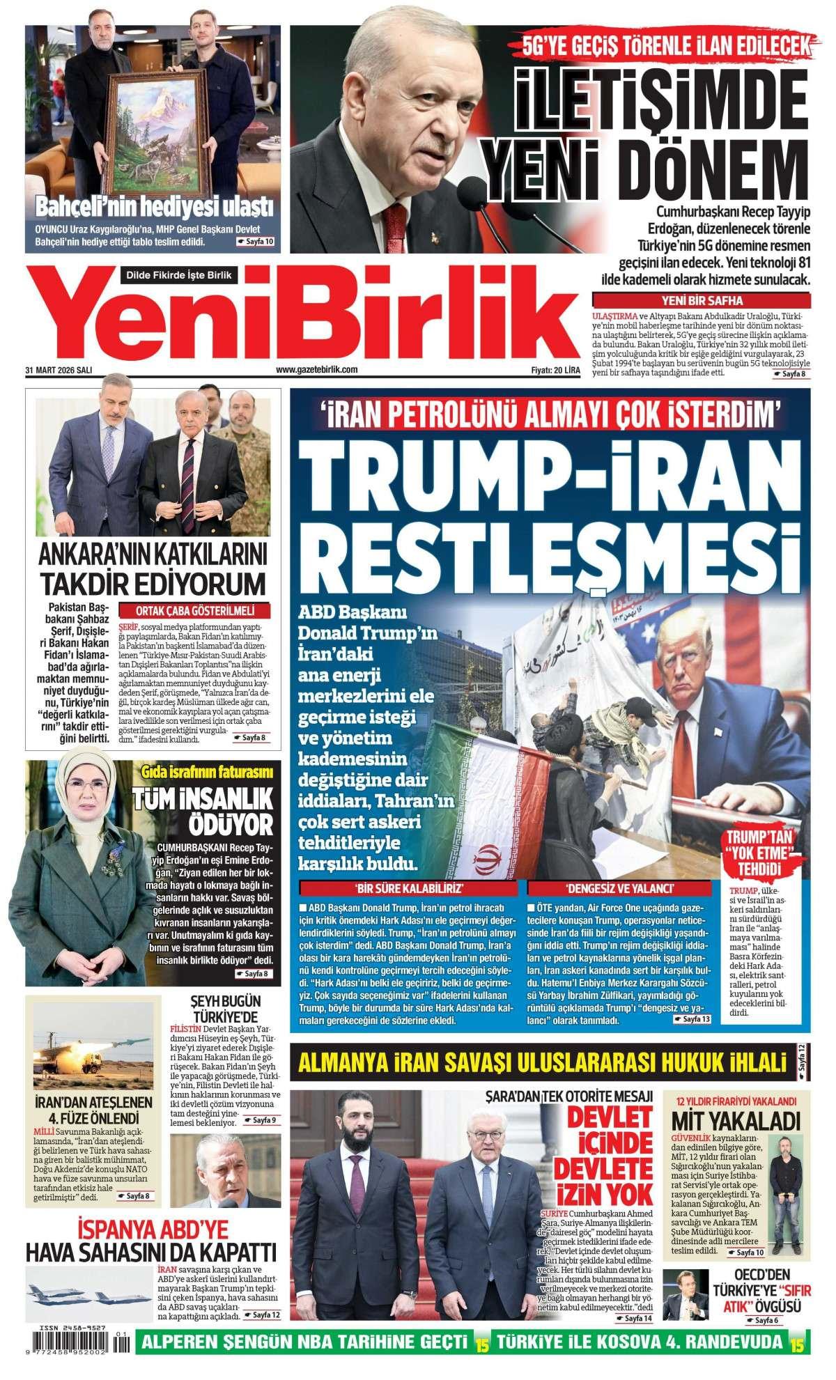 Yeni Birlik Gazetesi 1 Nisan 2026 Günü Manşeti